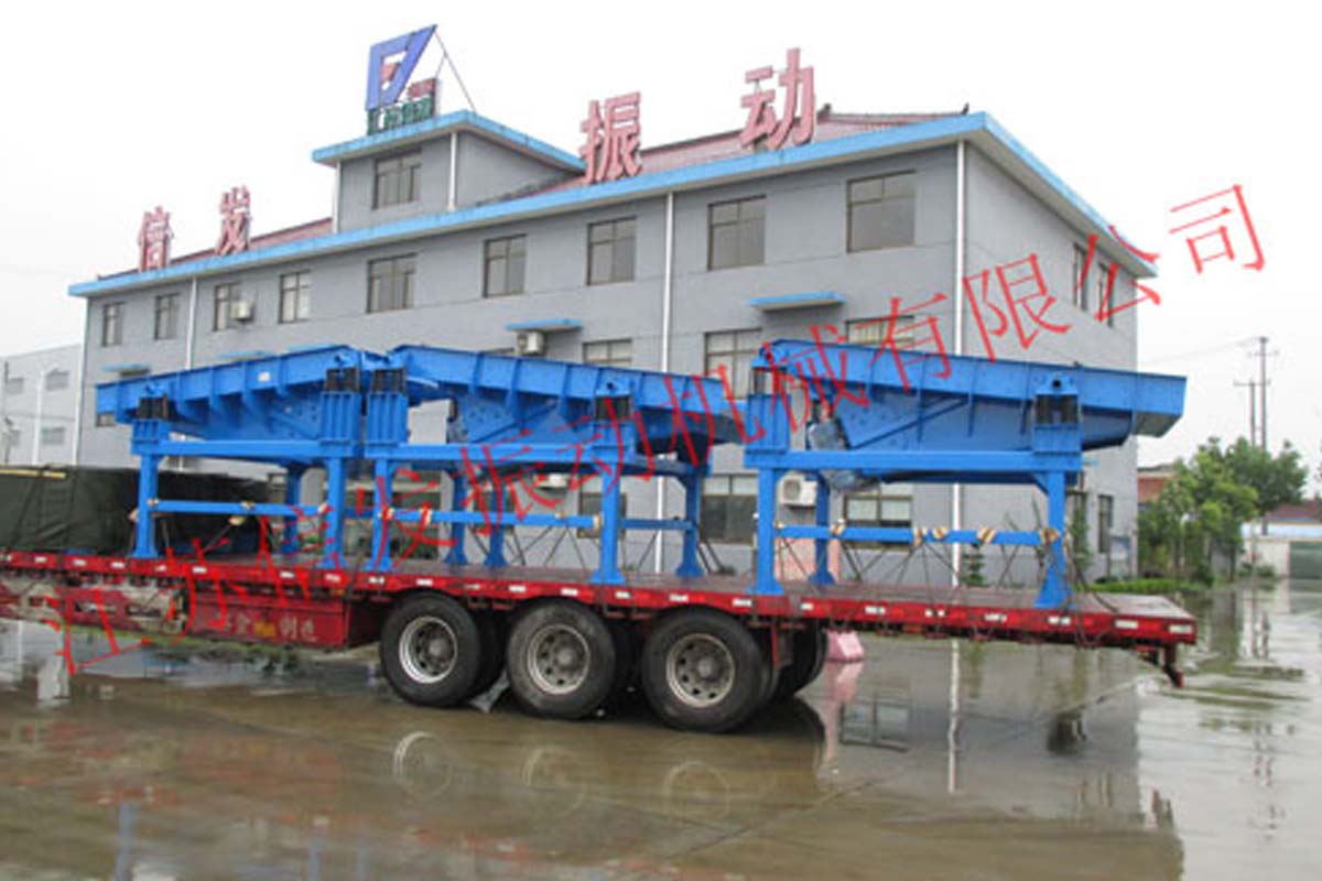 1.生產率的確定:本系列自同步慣性振動給料機的生產率是以河砂為標準物料給出的(堆比重為1.6T/m3)。當物料堆比重大于1.6T/m3時,其產量可按額定值選??;當物料的堆比重在1.2~1.6T/m3時,其產量可達到額定產量的0.9~1.0倍。當物料堆比重在0.8~1.2T/m3時,其產量可過到額定值的0.8~0.9倍。物料堆比重小于1.6T/m3時,須適當增加料層厚度,以提高產量。對于振動給料機難于輸送的物料(如滑石粉、鈦白粉、白泥、面粉、粘土等),以及含水量較大的親水性物料,則應根據試驗確定產量。必要時將槽體適當傾斜安裝(一般向下傾斜10~15度),以增加給料量。