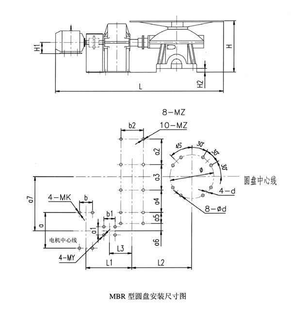 MBR 型圓盤給料機安裝圖及尺寸