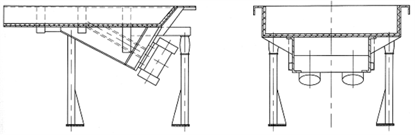 該系列給料機(jī)的給料過(guò)程是利用特制的振動(dòng)電機(jī)或兩臺(tái)電動(dòng)機(jī)帶動(dòng)激振器驅(qū)動(dòng)給料槽沿傾斜方向作周期直線往復(fù)振動(dòng)來(lái)實(shí)現(xiàn),當(dāng)給料槽振動(dòng)的加速度垂直分量大于重力加速度時(shí),槽中的料被拋起,并按照拋物線的軌跡向前跳躍運(yùn)動(dòng),拋起和下落在瞬間完成,由于激振源的連續(xù)激振,給料槽連續(xù)振動(dòng),槽中的煤連續(xù)向前跳躍,以達(dá)到給料的目的。