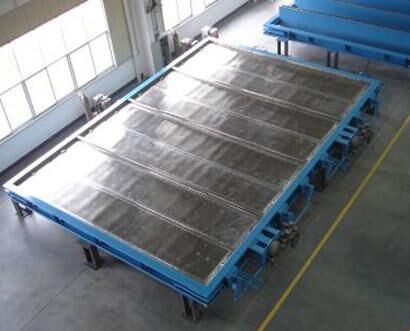 底層網(wǎng)為鋼絲繩芯聚氨脂網(wǎng)制成,由兩端拉鉤板漲緊形成托網(wǎng),與激振裝置直接接觸。在托網(wǎng)上面有兩層不銹鋼網(wǎng)粘接在一起的復(fù)合網(wǎng)。